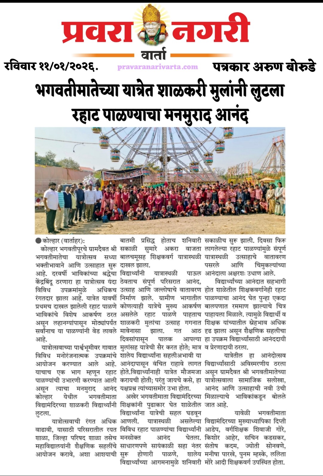 कोल्हार–भगवतीपूरमध्ये भक्तिमय वातावरणात भगवती मातेचा यात्रोत्सव आजपासून प्रारंभ